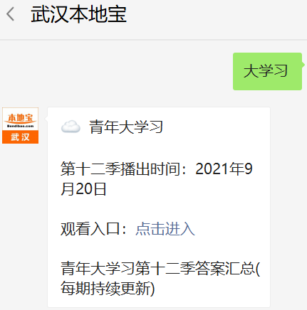温馨提示:微信搜索公众号武汉本地宝,关注后在对话框回复【大学习】可获青年大学习最新季每期播放时间及观看入口、每期题目及答案。