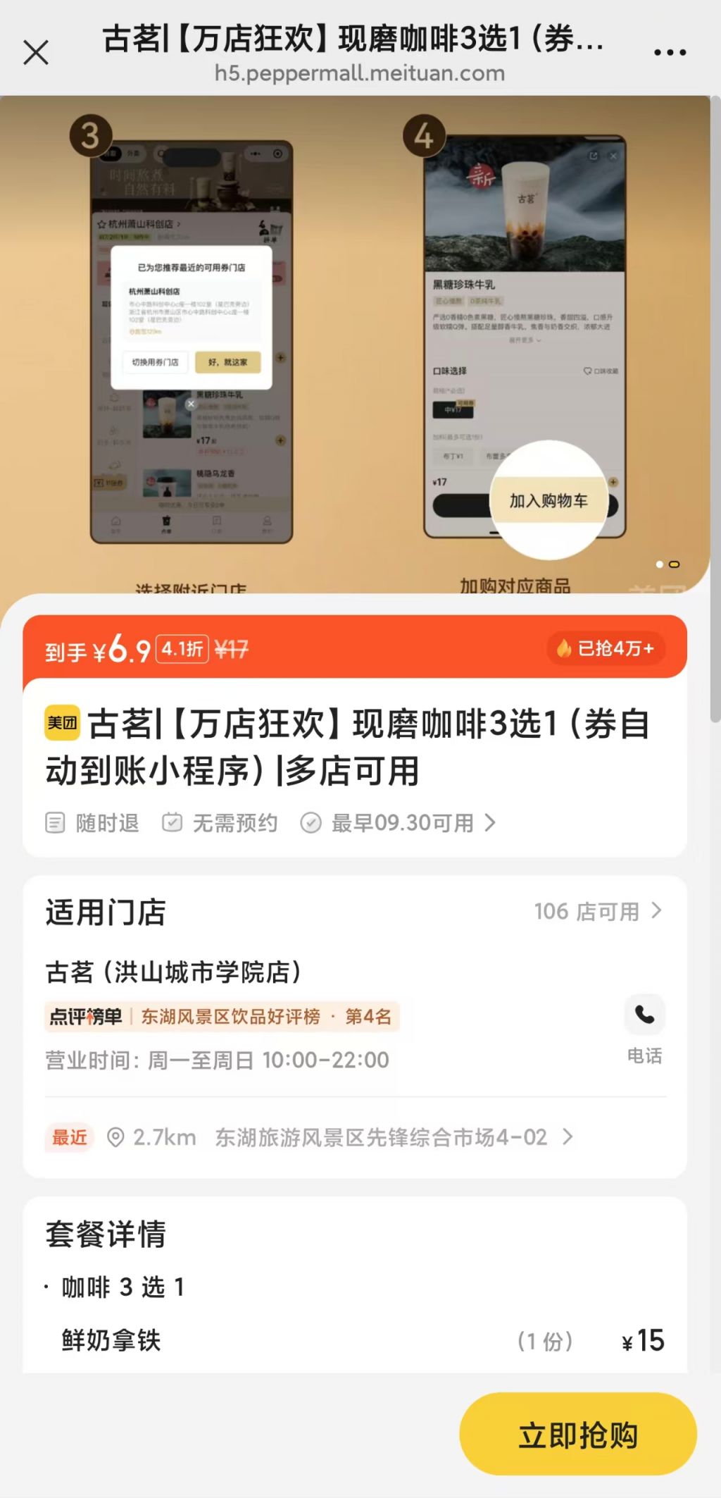核销时间:2025年9月1日-2025年10月15日 下单后券自动到账vx小程序,为避免线下核销排队,建议您优先使用小程序核销